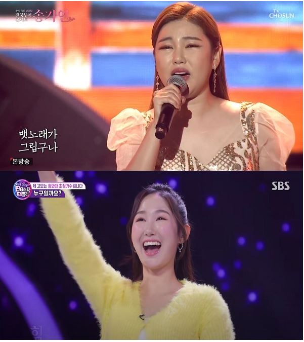 송가인과 그녀의 조카 배우 조은서씨는 화요일은 밤이 좋아에서 사랑의 밧줄의 하모니를 선사했습니다 어쩜 이 집안은 트로트를 이렇게 맛깔스럽게 부르는지 배우 조은서씨도 노래실력이 수준급이네요 송가인과 조은서는 사촌지간인데 조은서에서 송가인이고모가 되네요 송가인 큰오빠 딸!!