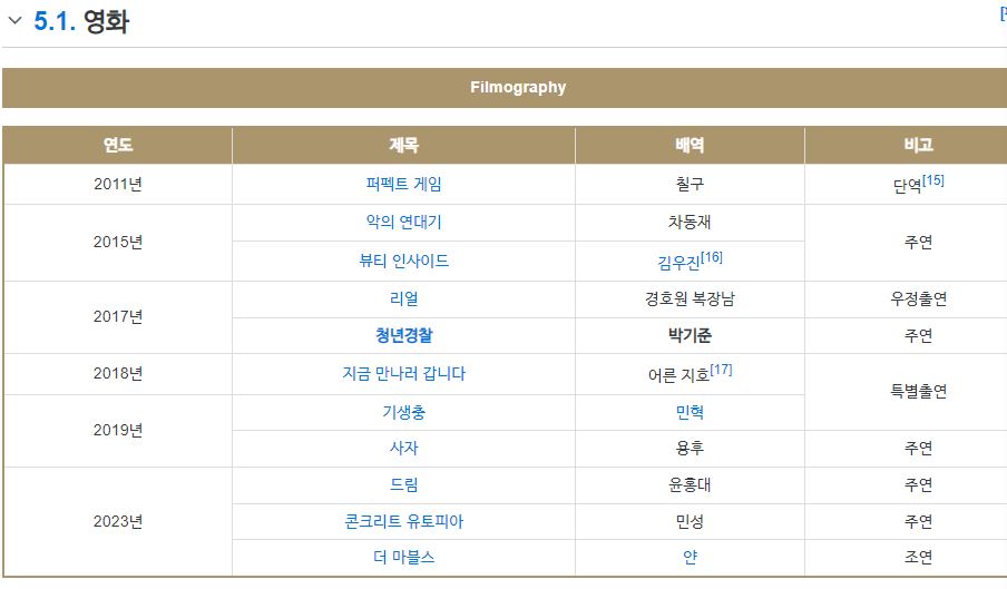 배우 박서준씨가 출연한 영화로는 퍼펙트게임.악의연대기,뷰티인사이드,리얼,청년경찰,지금만나러 갑니다,기생충,사자,드림,콘크리트 유토피아,더마블스가 있는데 저는 개인적으로 사자를 몇번을 봤던 영화이기도 합니다 잼나요 ^^