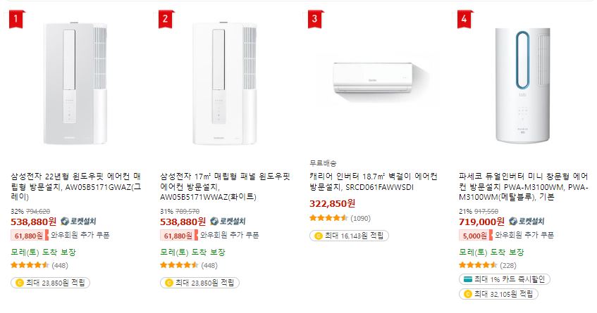 창문형 에어컨 추천 쿠팡 판매순위 23년 top4
