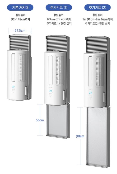 파세코의 상품은 창문 높이에 따라서 기본 거치대외에도 추가키트가 연결이 가능해서 어느 창문위치에도 적합합니다.기존 가격에서 7월1일부터는 최대 28%까지 저렴하게 구매할수 있는 이벤트도 진행중이니 참고하세요