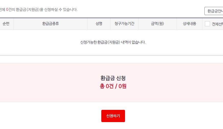 저는 모두 수령한 상태라서 이렇게 금액이 0으로 나오지만 신청하지 않으신분들은 여기에 금액이 기재되어 있습니다